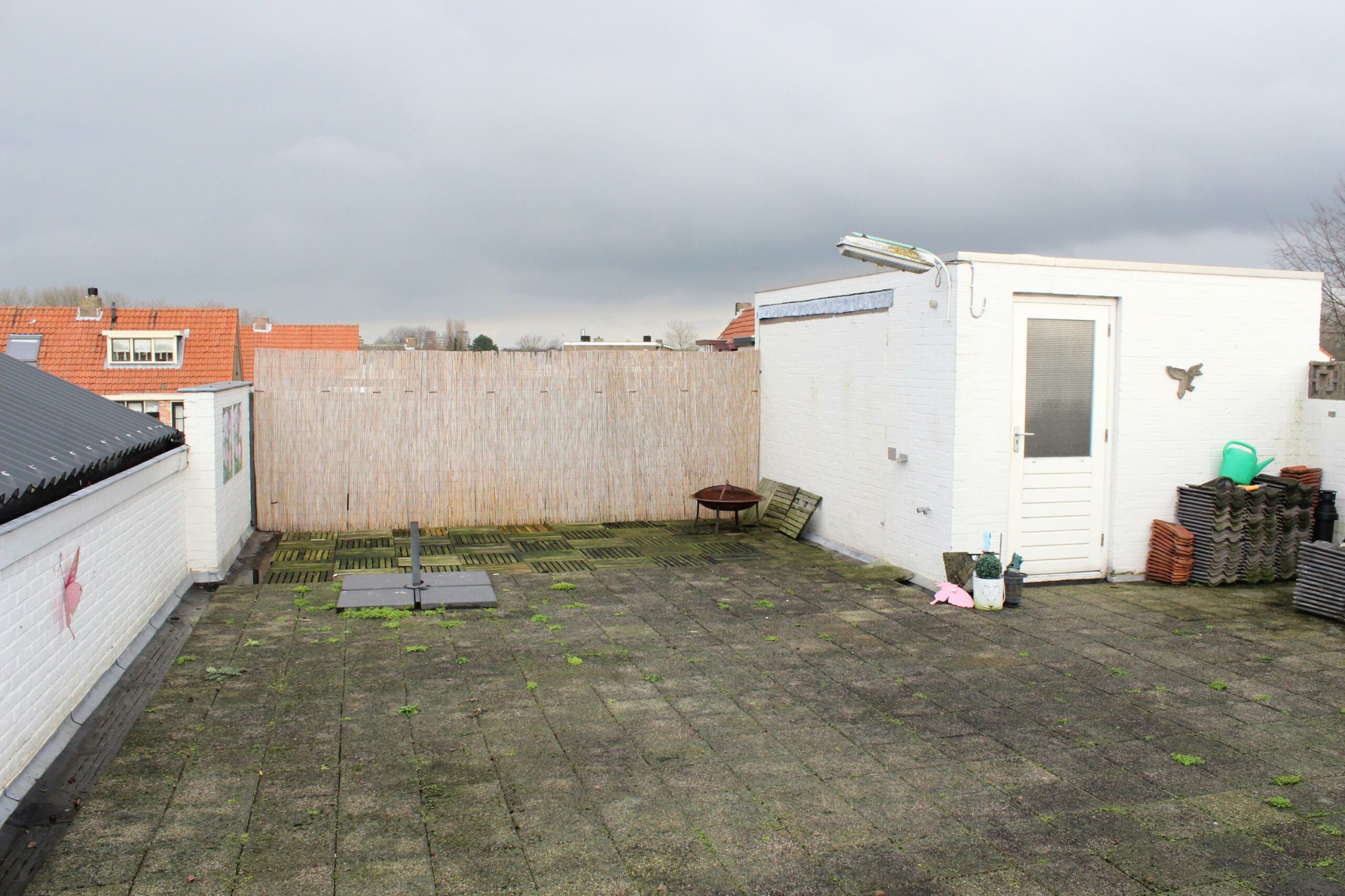 Het dakterras (60 m²) is te bereiken via de gang, de ouderen slaapkamer of via de CV-kamer. Via de achteringang en trappenhal is ook het dakterras op de 1e verdieping, en daarlangs de achter ingang van de woning bereikbaar.
