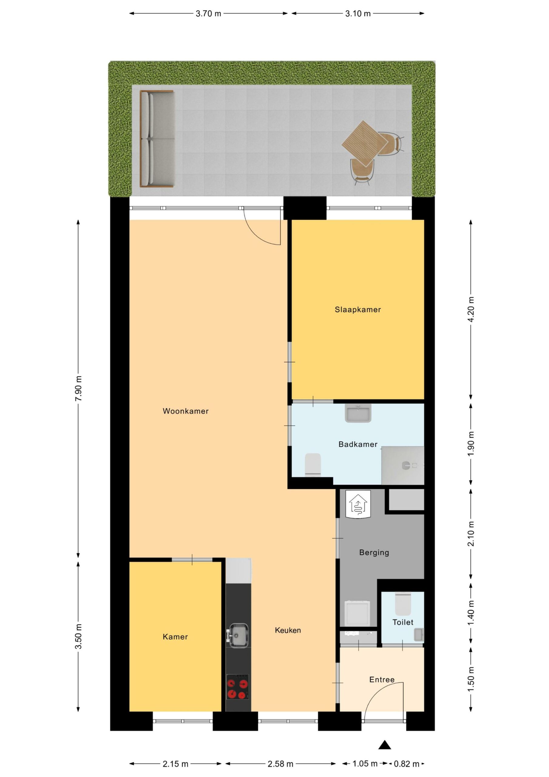 Het binnenterrein met tuin is een gezamenlijk domein waar u het volledig gebruik en genot van mag hebben.