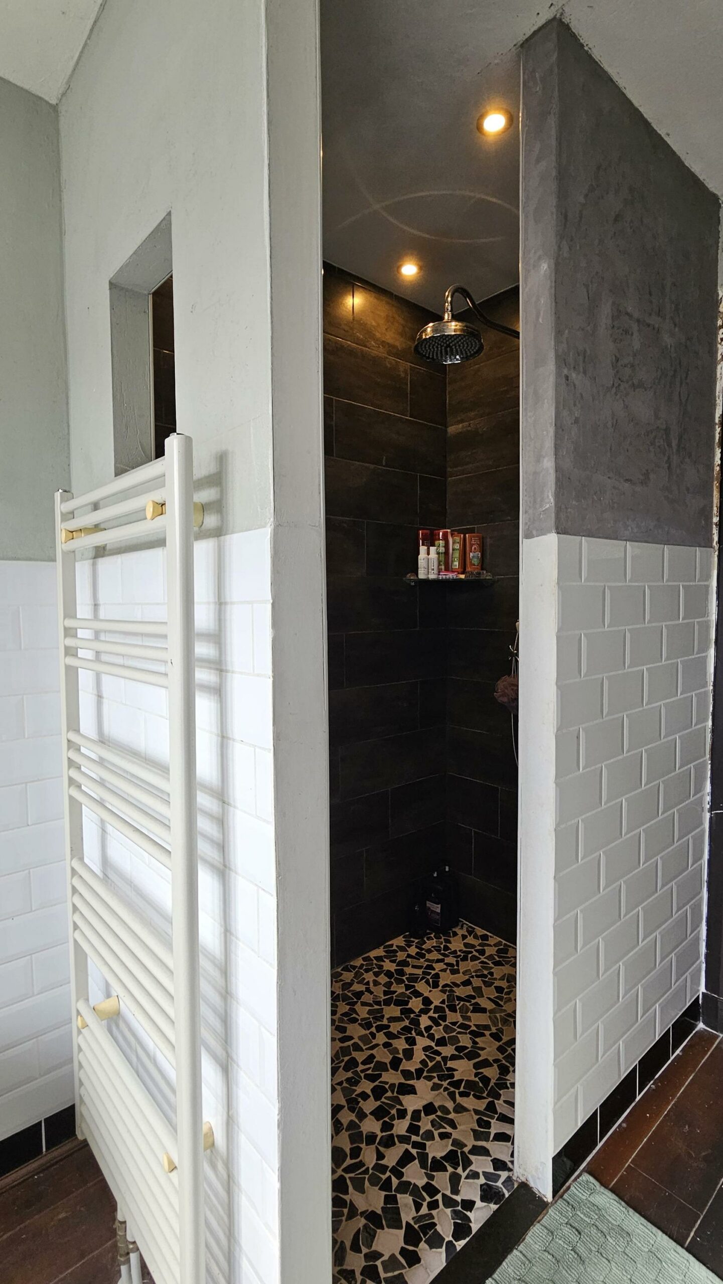 Op de 1ste verdieping vind je de badkamer met aparte douche, ligbad en wc.