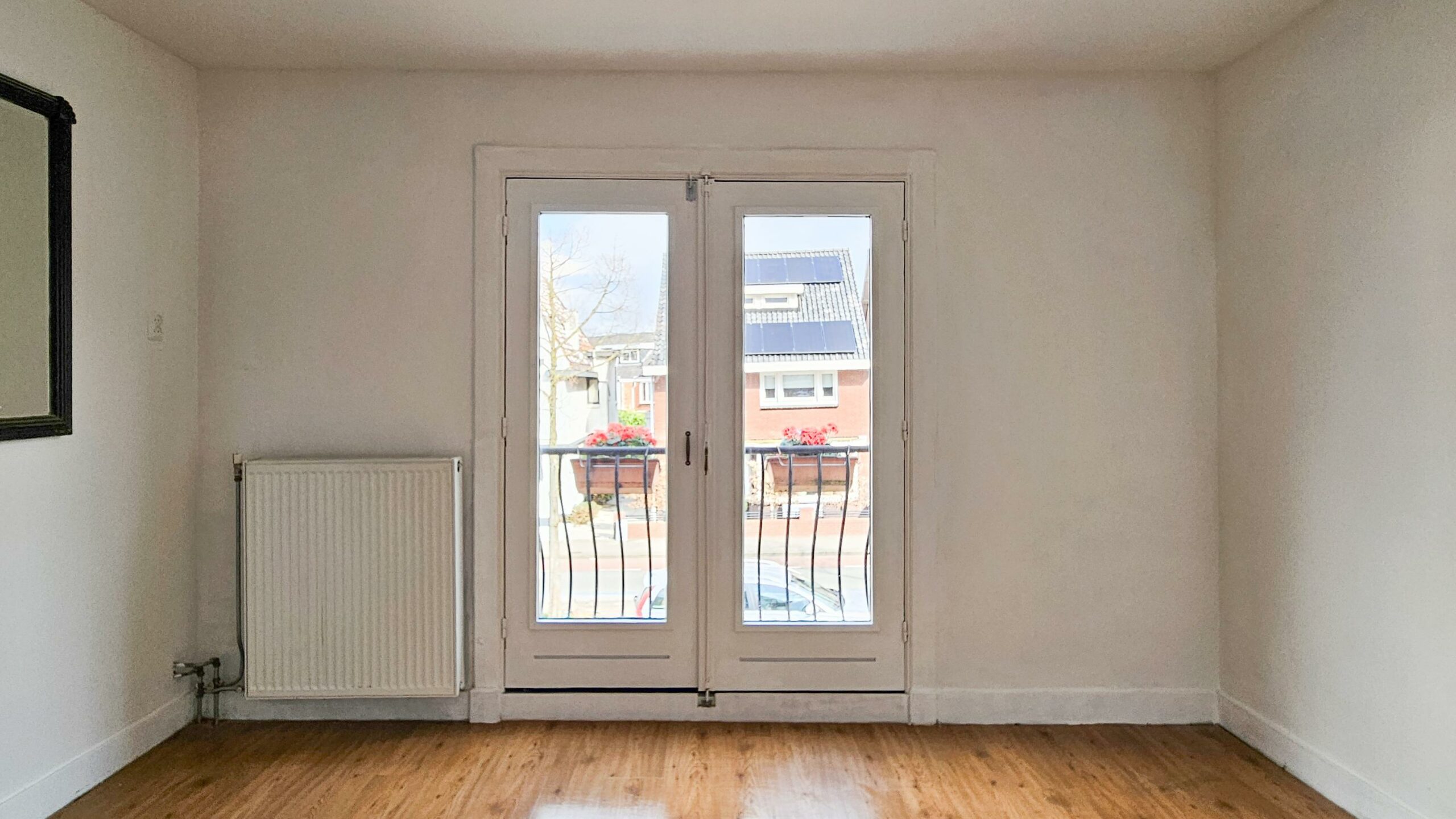 De grote slaapkamer aan de voorzijde is ook voorzien van openslaande balkondeuren.