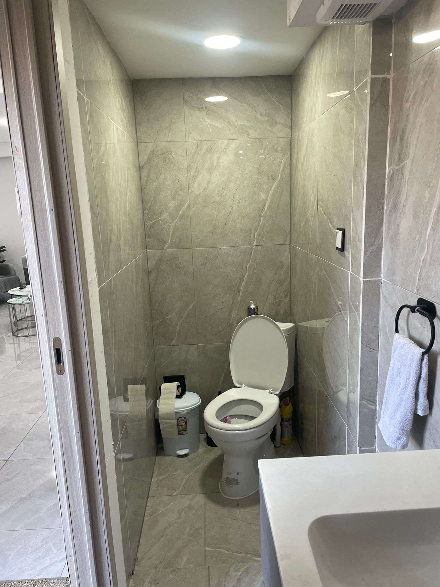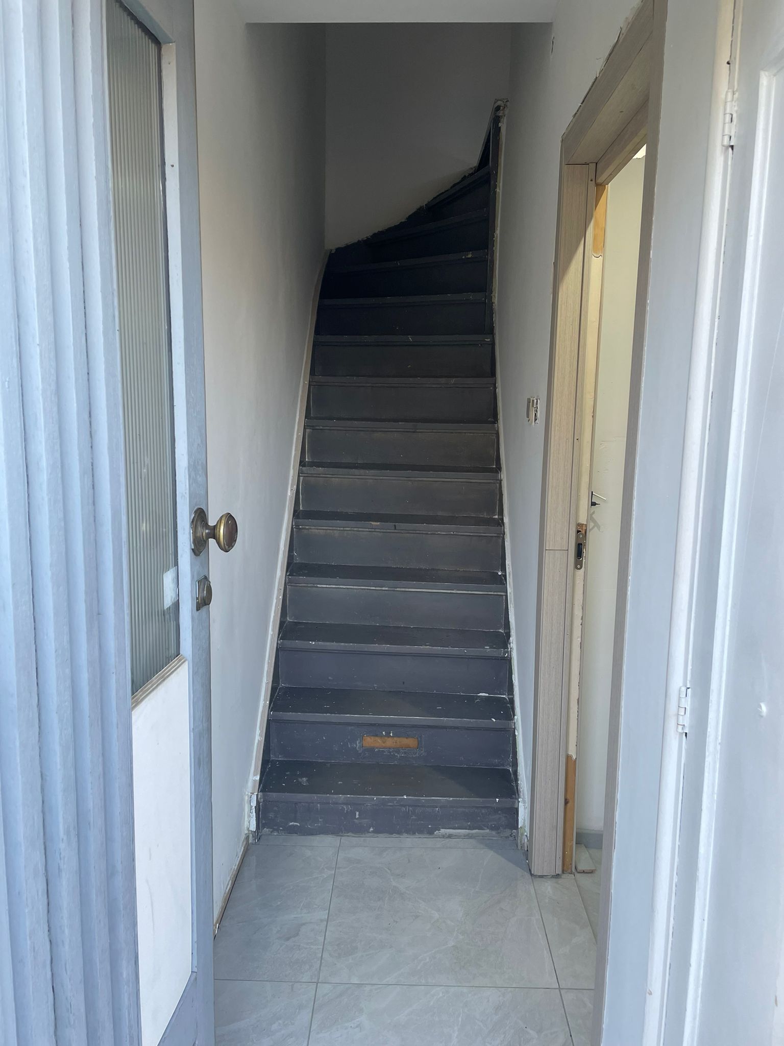 1ste verdieping: overloop, 2 slaapkamers, badkamer met wastafel, douche, toilet en aansluiting wasmachine.