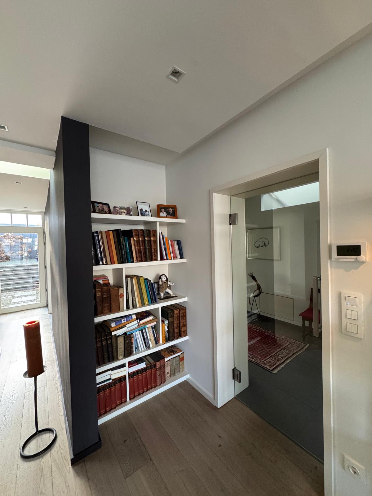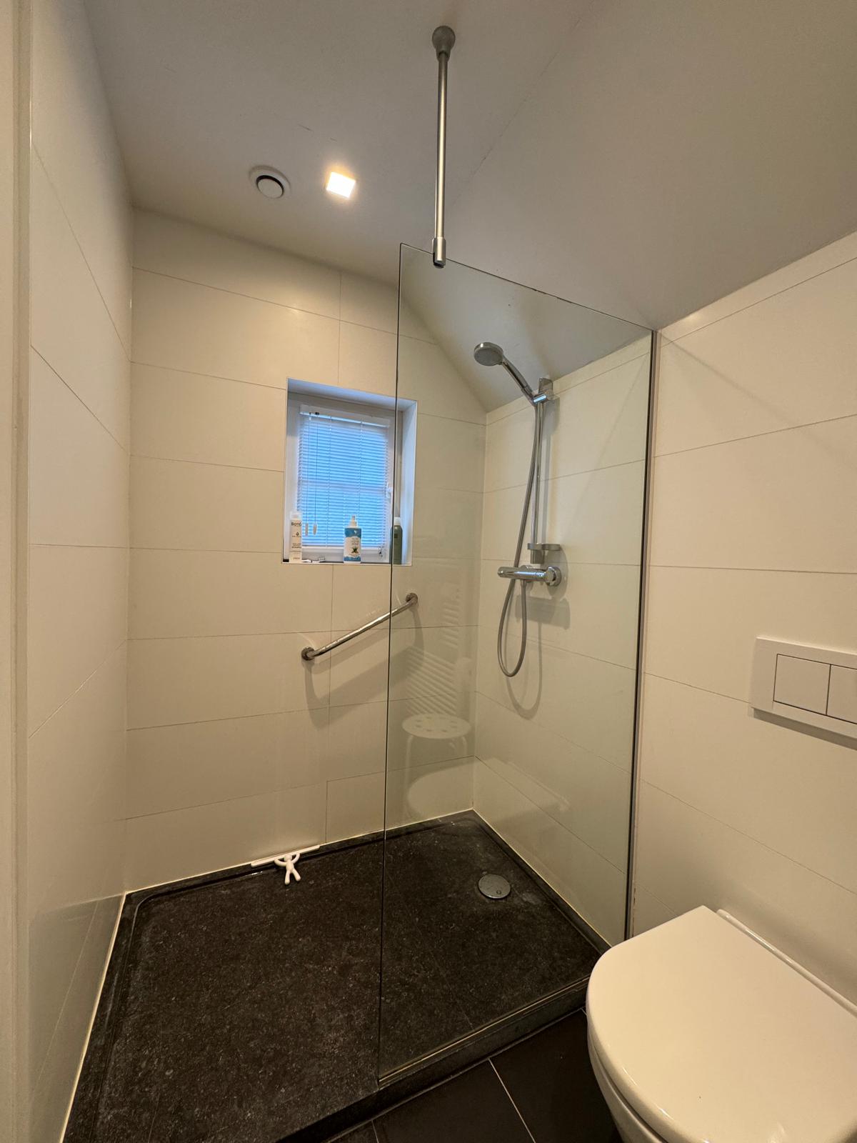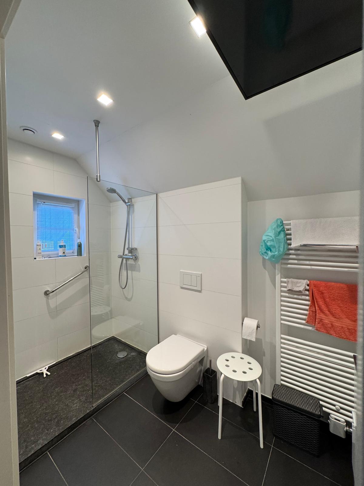 • Badkamer met inloopdouche, hangtoilet en wastafel en eigen thermostaat.