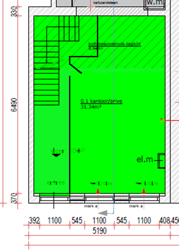 Een ruime kamer met mogelijkheden voor bijvoorbeeld een kantoor of voorziening zoals een tandarts- of dokterspraktijk.