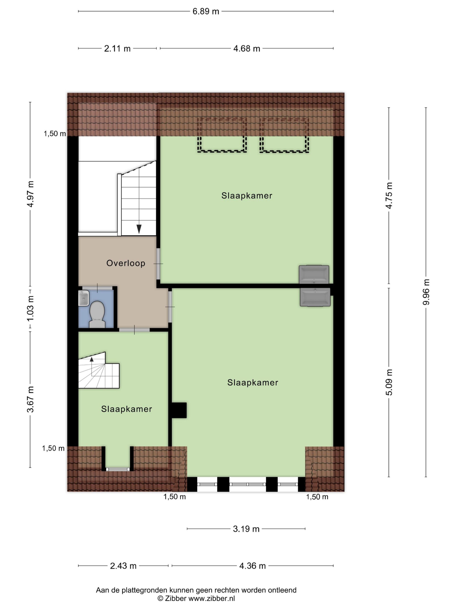 De slaapkamer aan de achterzijde heeft Veluxramen met zonwering.