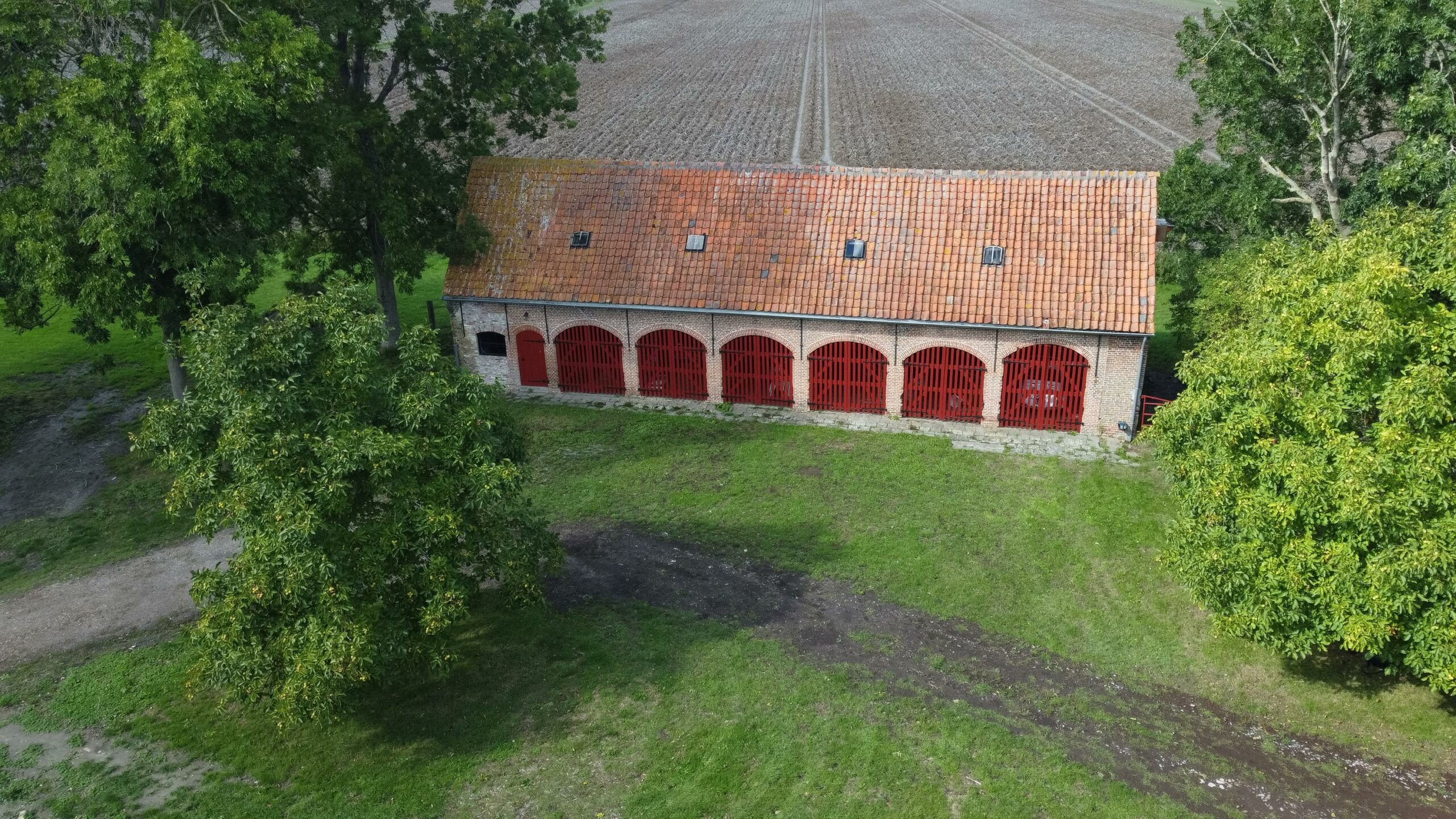 De indrukwekkende boerenschuur van circa 560 m² bestaat uit diverse compartimenten met royale opslagruimtes, voormalige stalruimtes en een volwaardige woonunit.